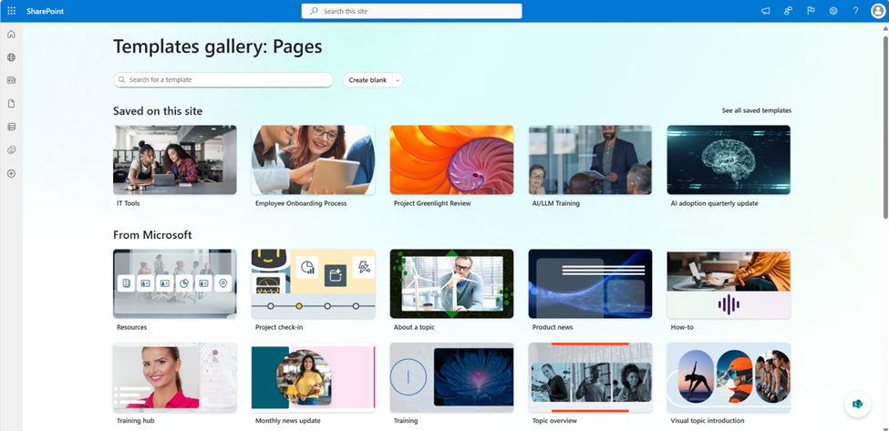 You can now access templates from multiple entry points in SharePoint: