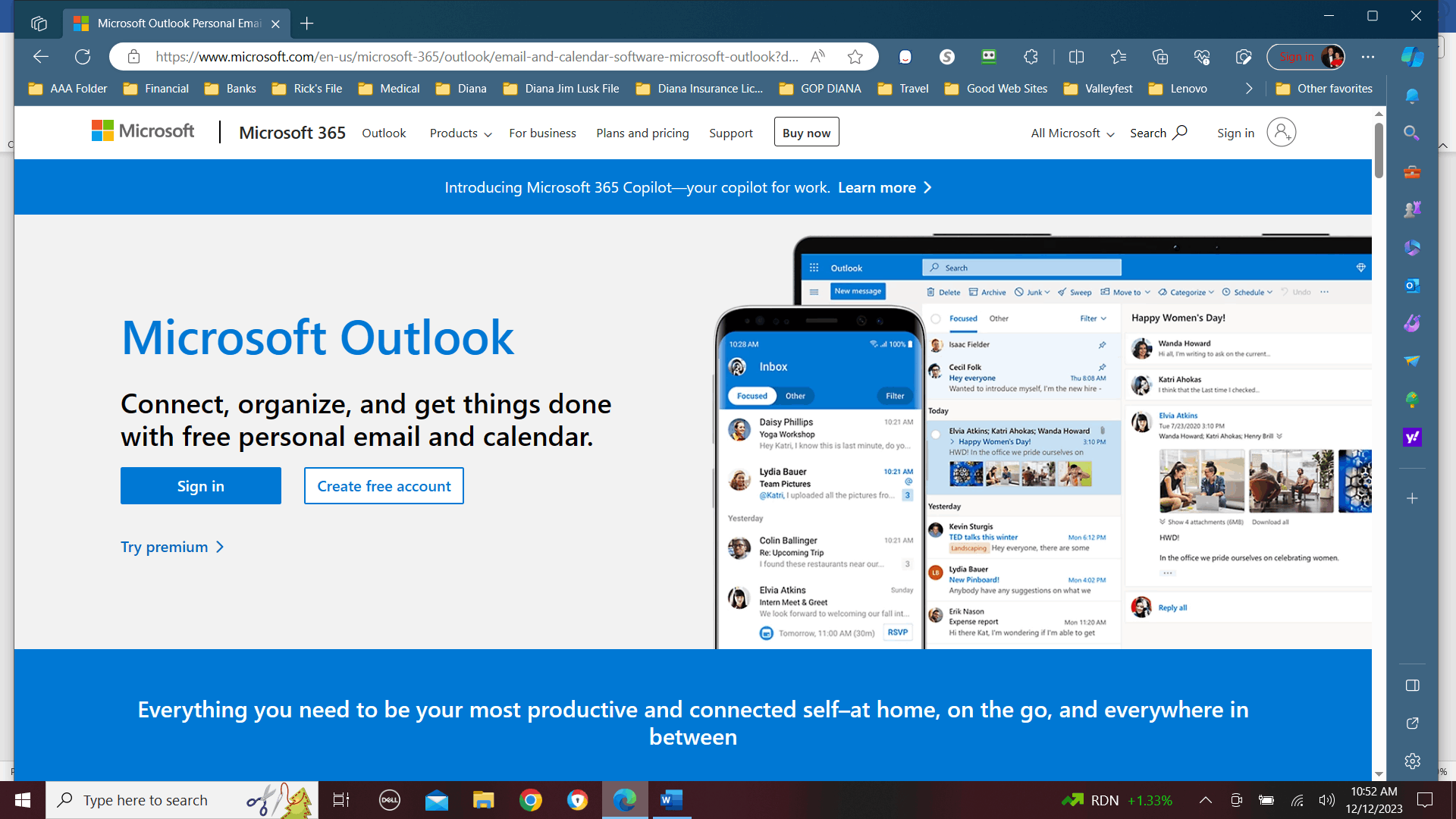 #A. First screen that I open. OUTLOOK is on the upper left. I click on that which leads me to: